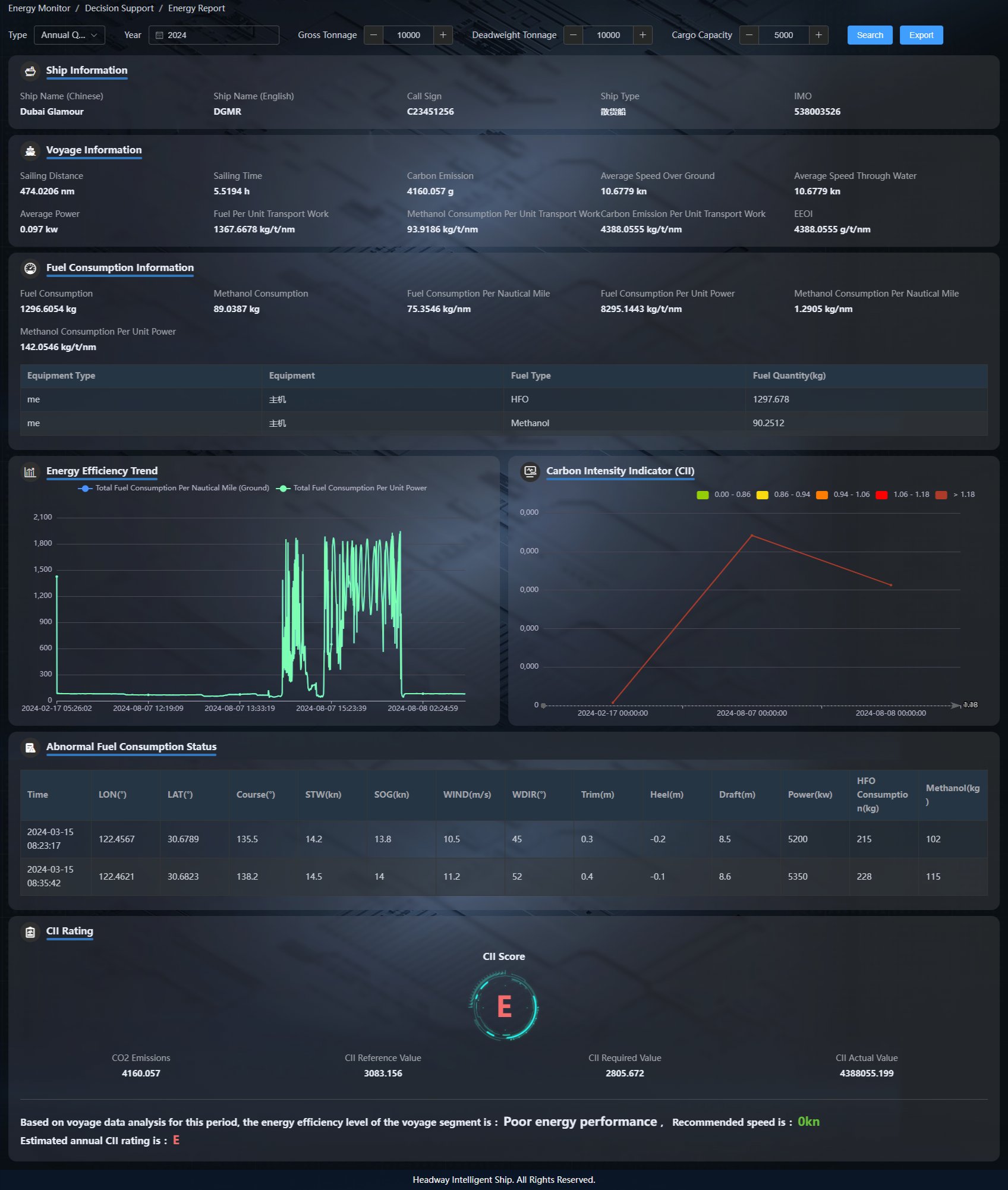 基于智能信息集成平臺(tái),實(shí)時(shí)監(jiān)測(cè)船舶航行各個(gè)關(guān)鍵指標(biāo),運(yùn)用現(xiàn)代化船舶能效管理的系統(tǒng)性方法,對(duì)船舶能源消耗、能源利用效率和二氧化碳排放進(jìn)行嚴(yán)格的控制和管理,提高船舶能效,減少設(shè)備自身或人為因素造成的額外消耗,實(shí)現(xiàn)船舶節(jié)能減排的能效要求,推動(dòng)航運(yùn)綠色發(fā)展。